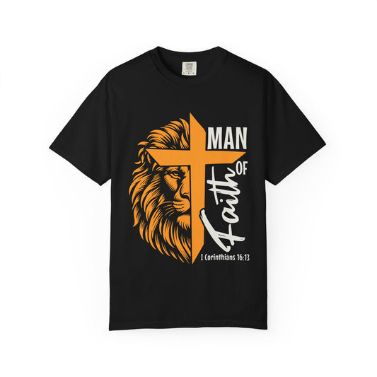 Faithful Lion Cross T-Shirt — "Man of Faith" Christian Tee (1 Corinthians 16:13)